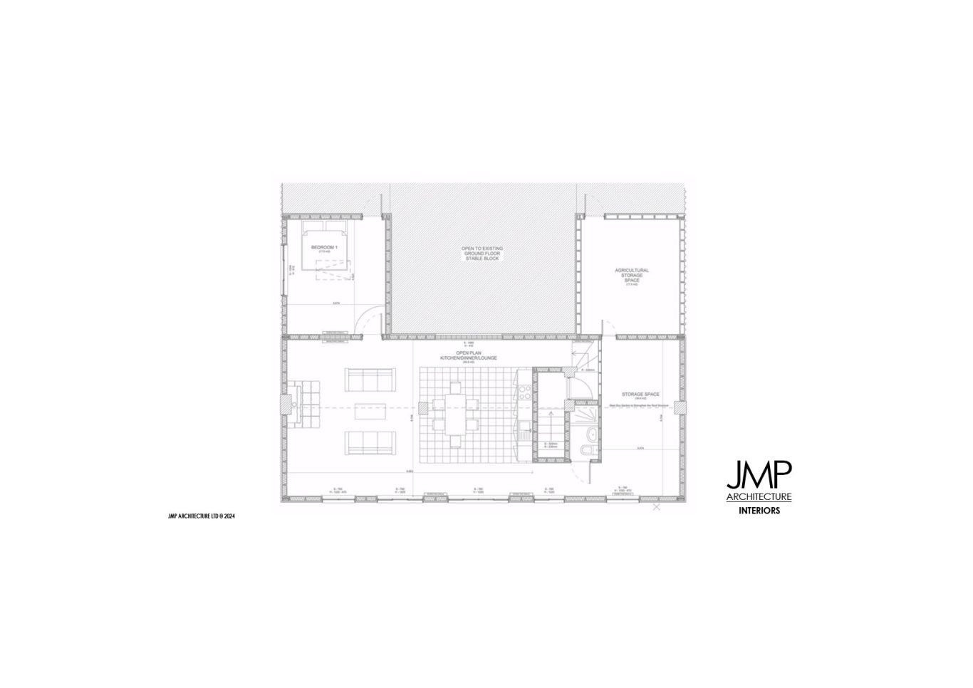 JMP Architecture, working with the Client proposed the redevelopment of an existing mezzanne floor. Located over the main enterance to the building and providing a one/two bedroom flat, with open plan kitchen dinner.
