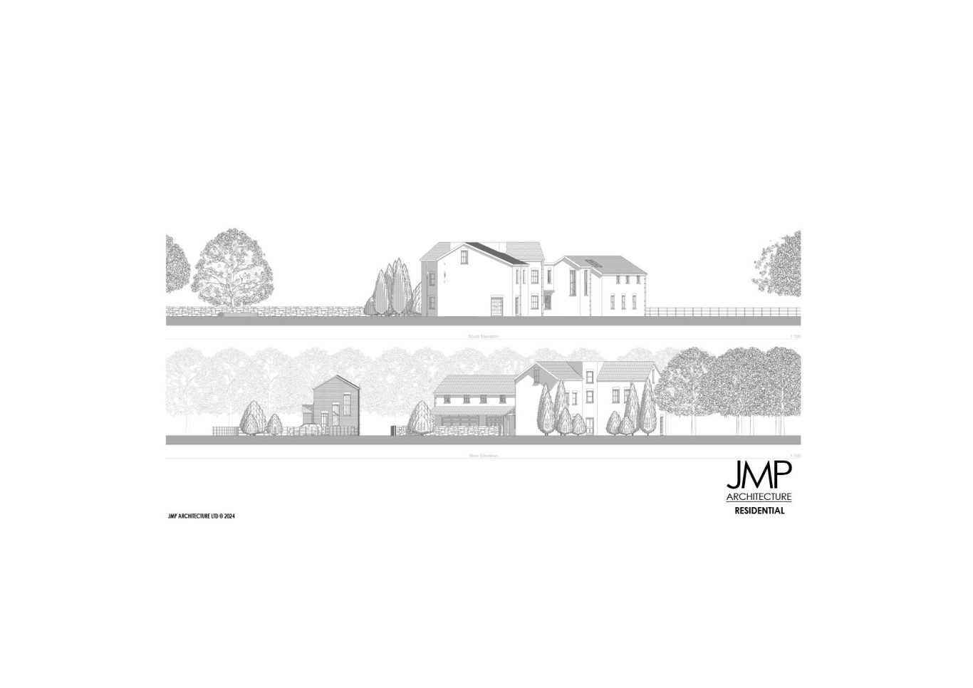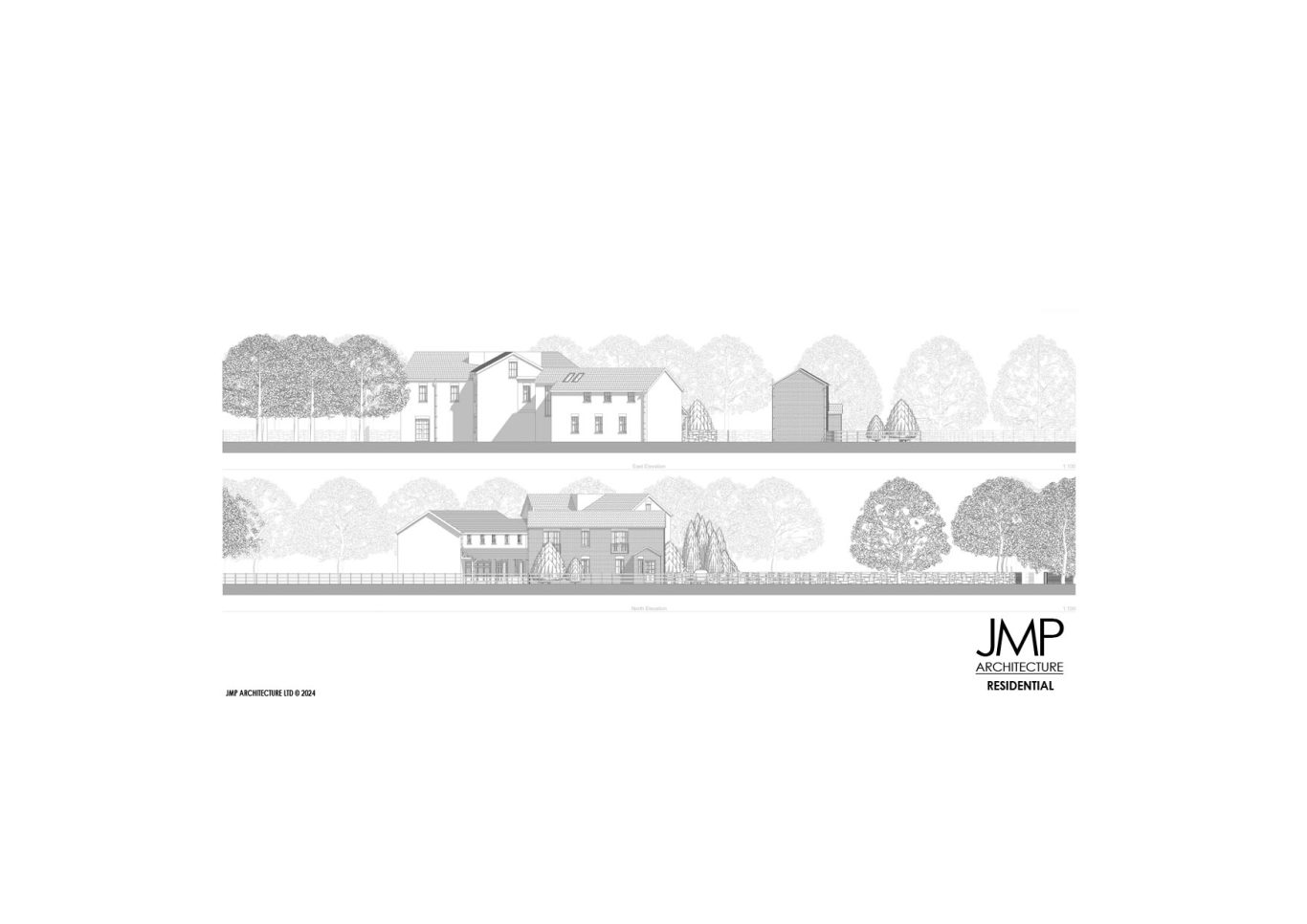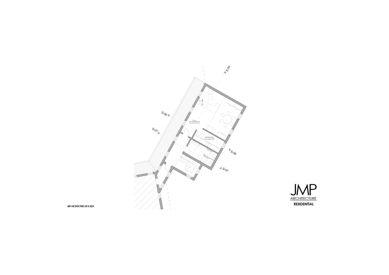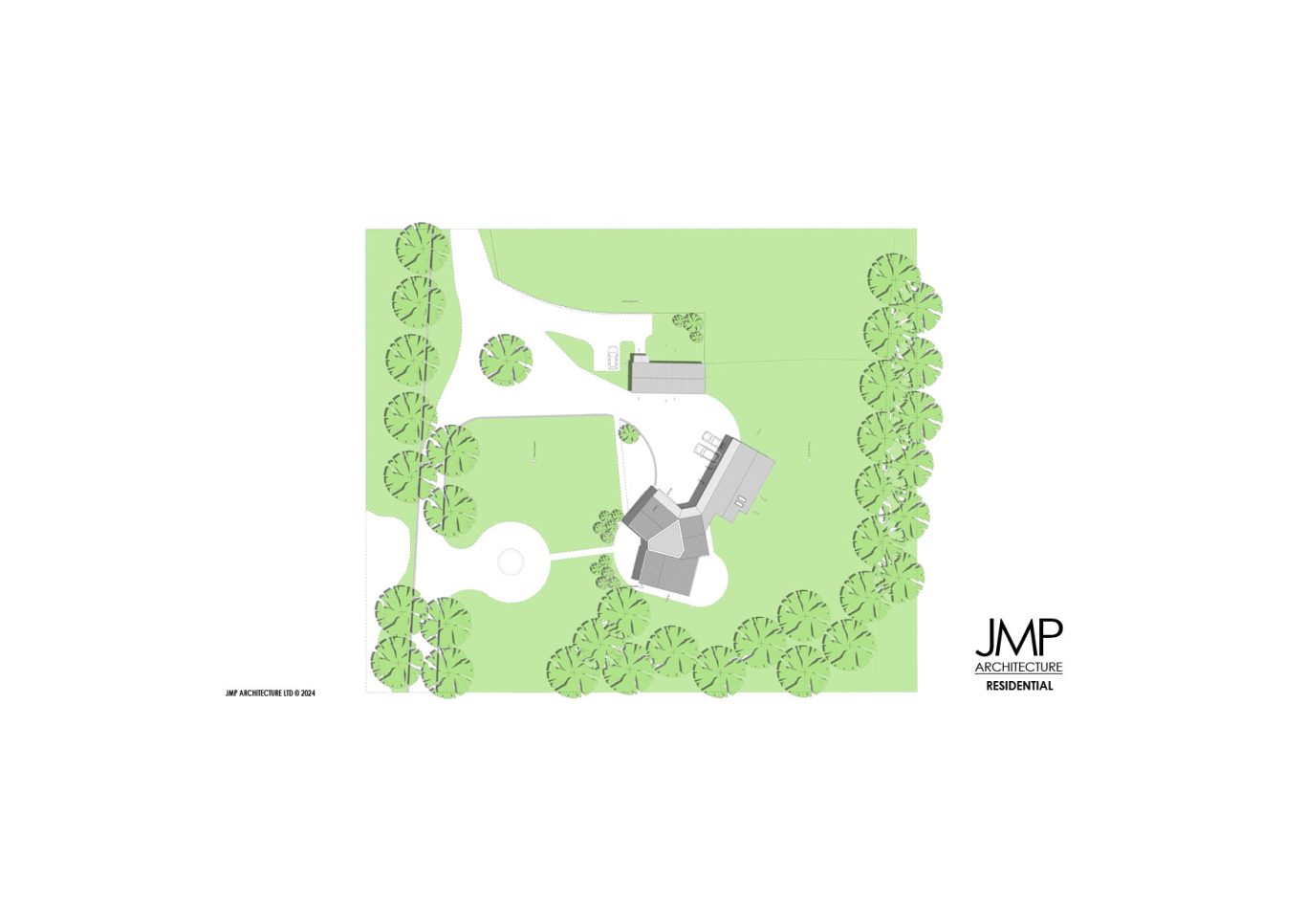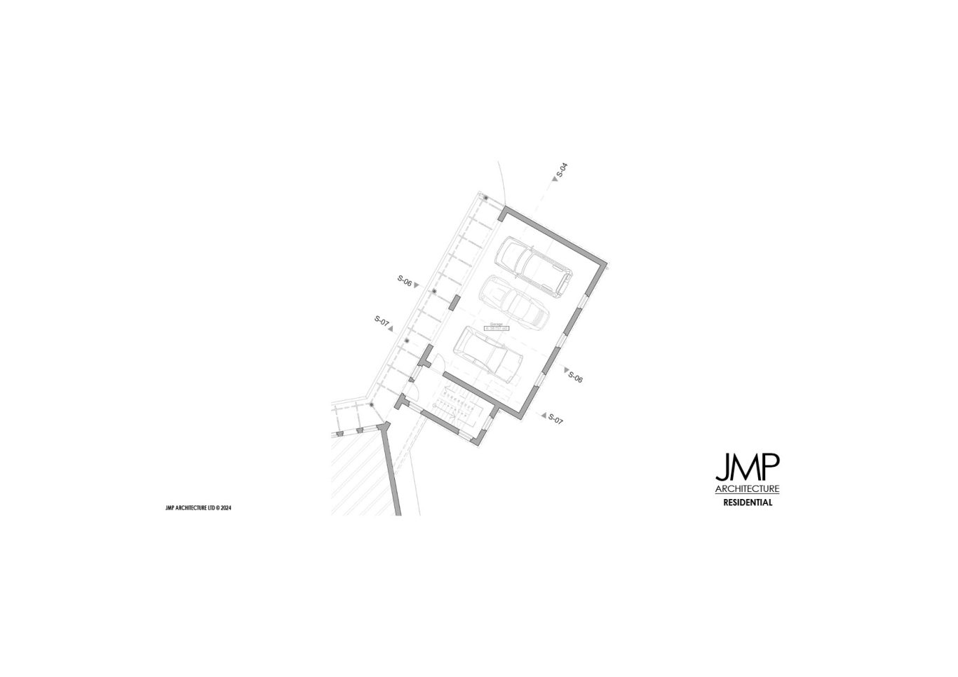 JMP Architecture, with the Client, developed a scheme which provided on the footprint of the existing garages a two-bedroom annex and a three-car garage with home office facility connected to the main house.